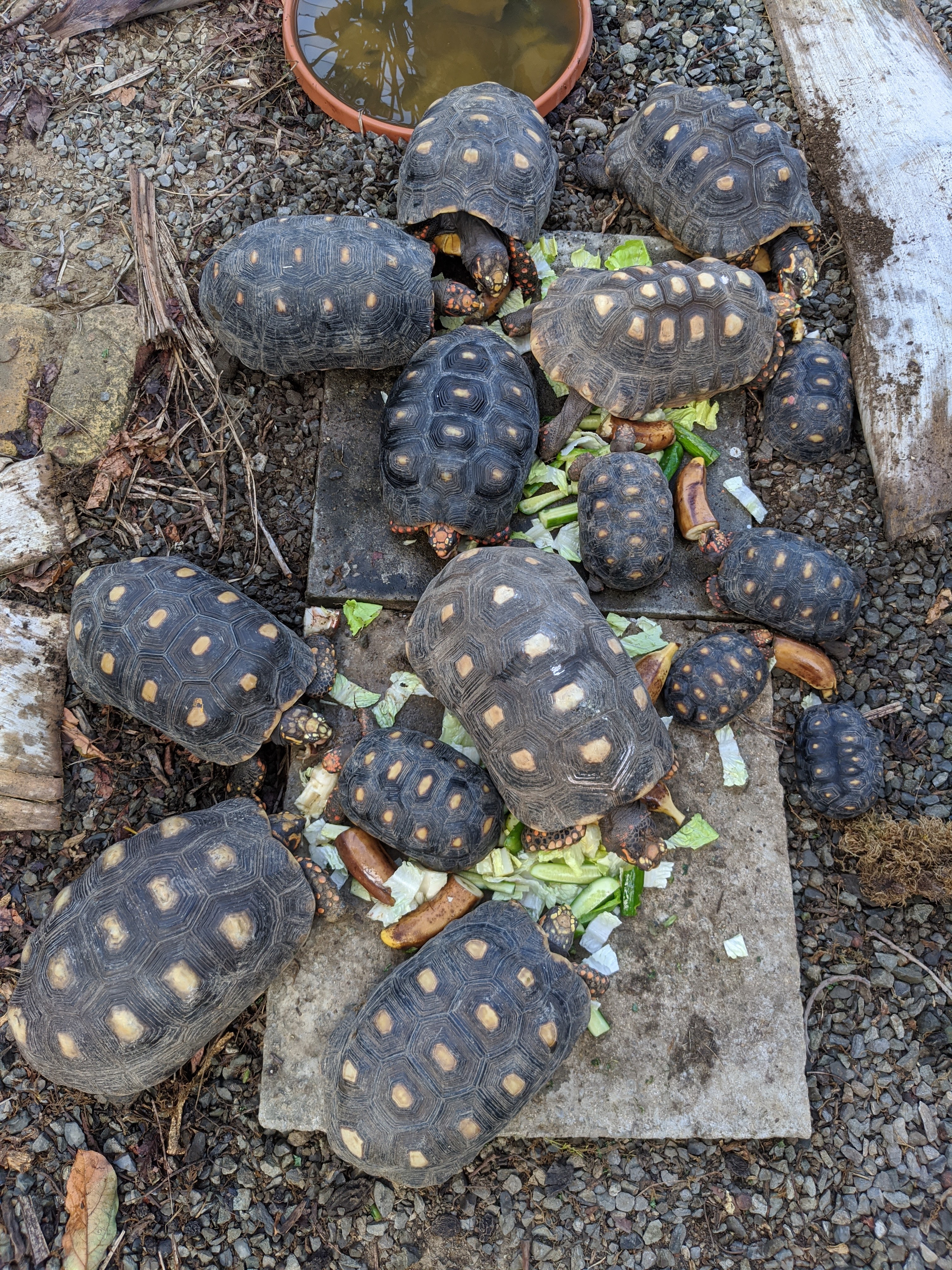 I determined that I had to return Marley to the person who had given him to me. But I was going to take a female instead. When I realized that my friend had 2 females and 3 males, and trading Marely for one female would leave the remaining single female with 4 males (including the aggressively amorous Marley), I knew I had to take both females (ladies and gentlemen, this is how my creep grows…). I mean, you can’t have too many tortoises if you don’t count them, right?!