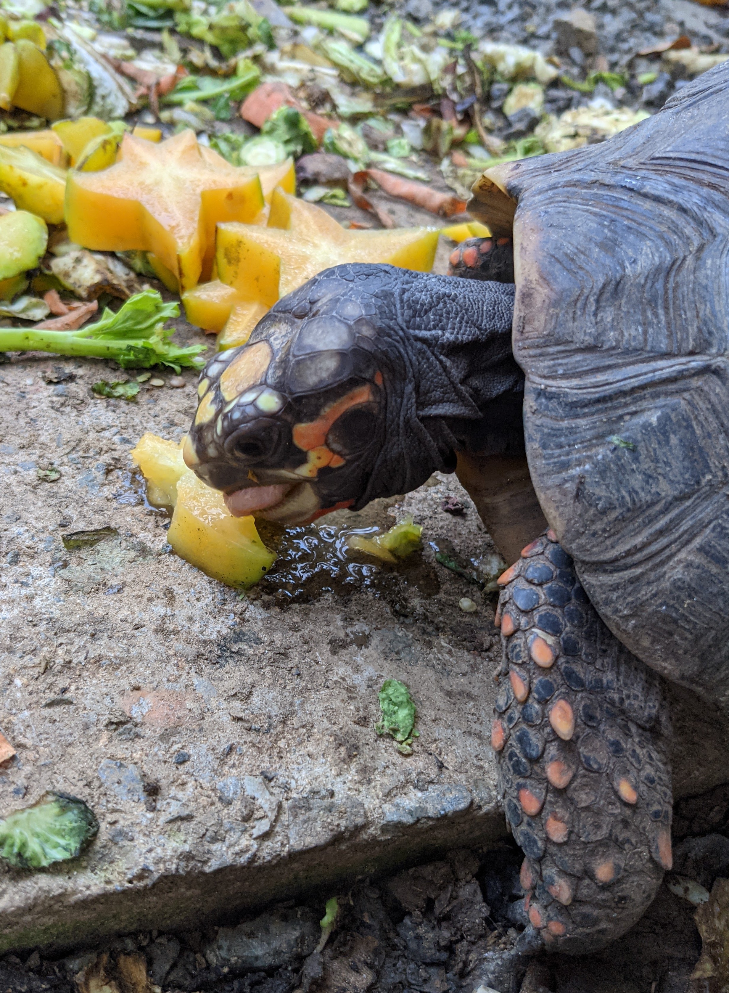 While he was with us, there was no peace in Torti Town. Several of the tortoises stopped coming out for meals, choosing to stay hidden from the advances of Marley.