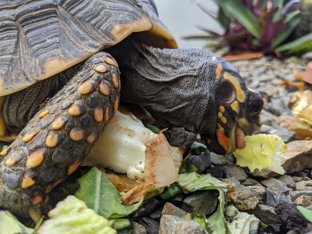 I mentioned in another blog post (Lesson Two: Things Do Not Have to be Perfect to be Ideal) that tortoises can feel the vibrations. And when they feel my vibrations, they come out of their hides to see what good stuff I have brought for them. The tortoises have learned that the vibrations of human footsteps bring good things (usually a buffet of salad goodness).