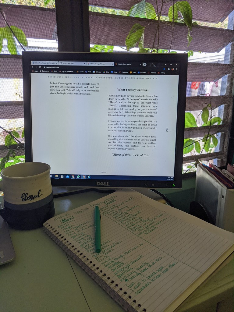 I’m on Day Six of the Begin with Yes 21 Day Companion Workbook. I’m doing this with 3 of my girlfriends who live almost 2,000 miles away from me (I’m on the island of St Croix, USVI, and they are in my hometown of Cincinnati, Ohio).